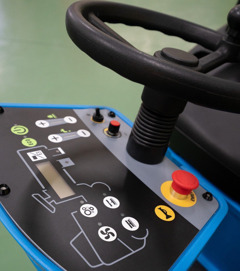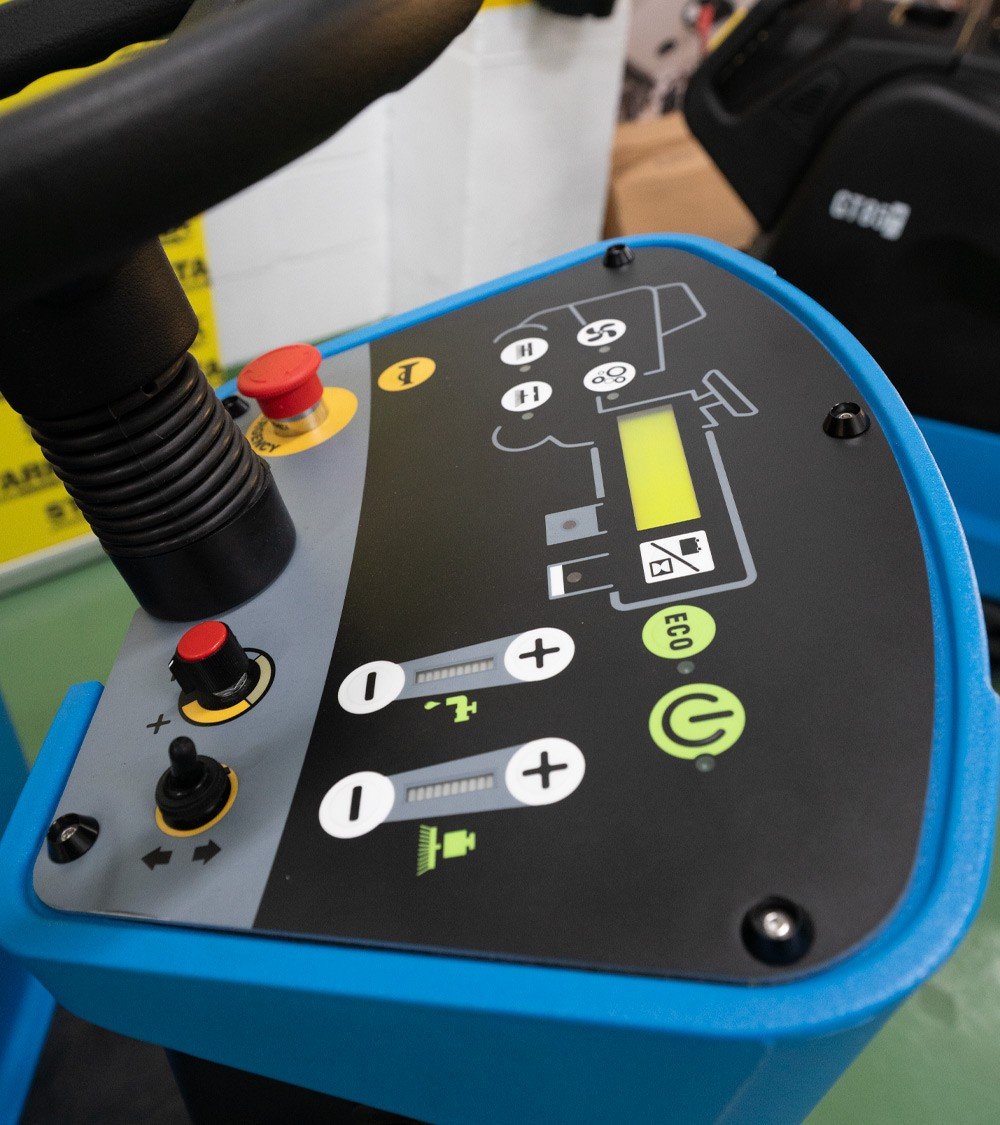 Equipada con una batería de 330 Ah, la GT180 B95 ofrece hasta 5 horas de autonomía continua, optimizando el tiempo de trabajo sin interrupciones. Su sistema automático de ajuste de presión de cepillo permite adaptarse a diferentes tipos de suelo, alternando entre barrido y fregado según la necesidad. Además, el innovador sistema ‘One-Touch’ con diagnóstico a bordo (OBD) hace que su manejo sea intuitivo, cómodo y rápido, ideal para operarios que buscan eficiencia sin complicaciones.