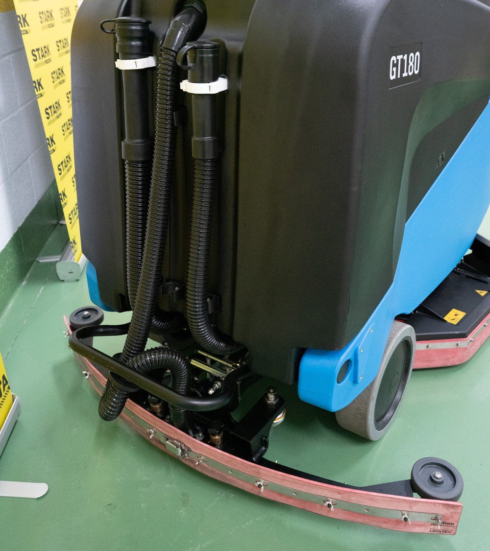 La  GT180 B95 también destaca por su tecnología de protección. Un sensor de agua inteligente salvaguarda tanto el disco del cepillo como el sistema de aspiración, evitando daños y alargando la vida útil de la máquina. Sus dos discos laterales aseguran una limpieza más amplia y uniforme, mientras que su gran capacidad de 135 litros de tanque de solución y 180 litros de recuperación permite cubrir extensas superficies sin necesidad de parar a rellenar.