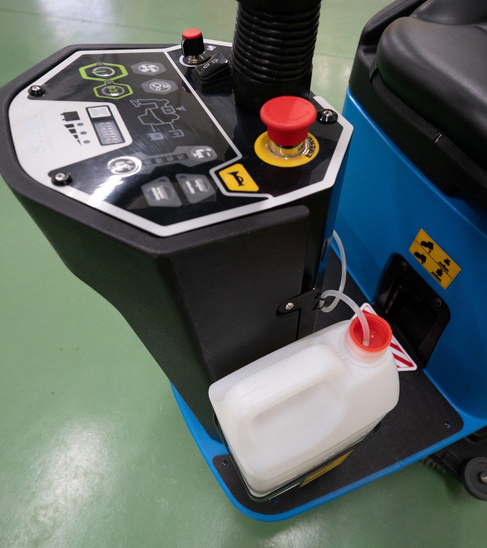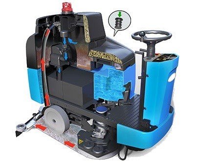 Destaca por su modo ECO, que permite extender la autonomía hasta 6,5 horas de trabajo ininterrumpido, ideal para jornadas intensivas. Además, este modo reduce el ruido a solo 60 dB, permitiendo operar en entornos donde se requiere bajo nivel sonoro, como centros comerciales, hospitales o instalaciones de uso público, sin generar molestias. Su sistema de tracción integrada y regulación de velocidad brinda al operario un control total, facilitando el desplazamiento y mejorando la productividad incluso en superficies extensas o de difícil acceso.