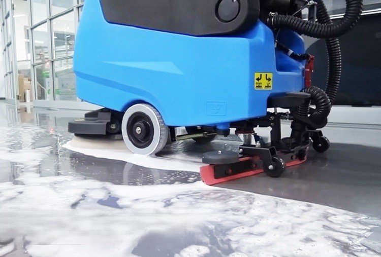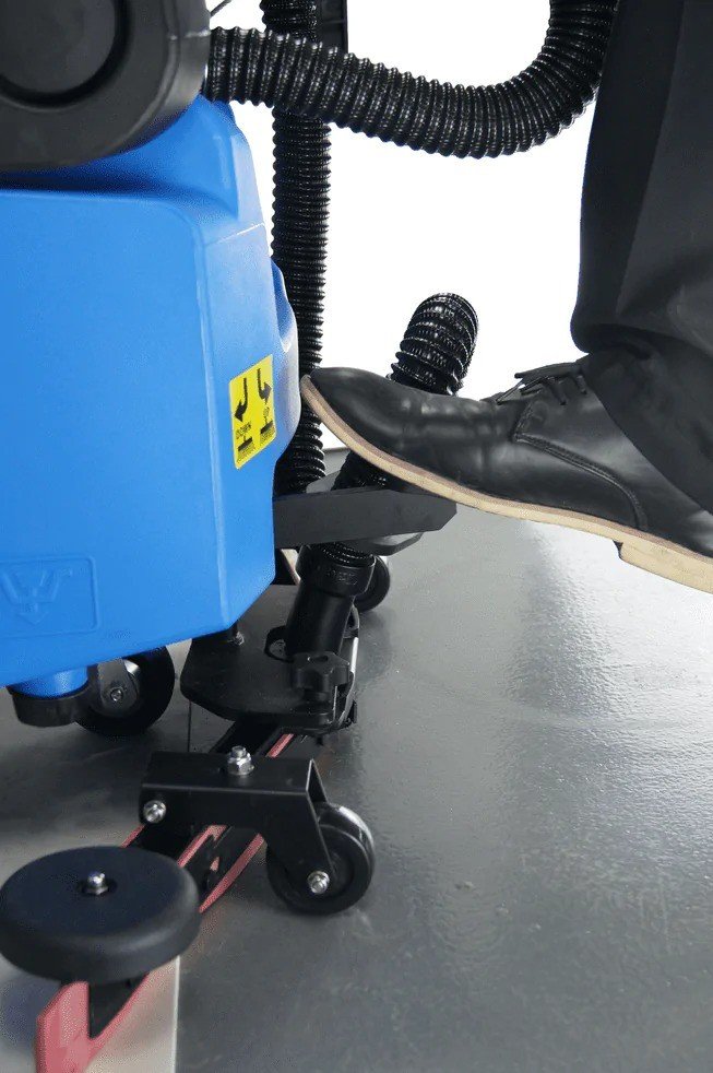 La fregadora incorpora un cepillo central de alto rendimiento, diseñado para eliminar suciedad y manchas de forma efectiva. Además, su labio de secado trasero asegura que los suelos queden secos y transitable inmediatamente, minimizando el riesgo de resbalones y mejorando la seguridad en áreas de alto tránsito.