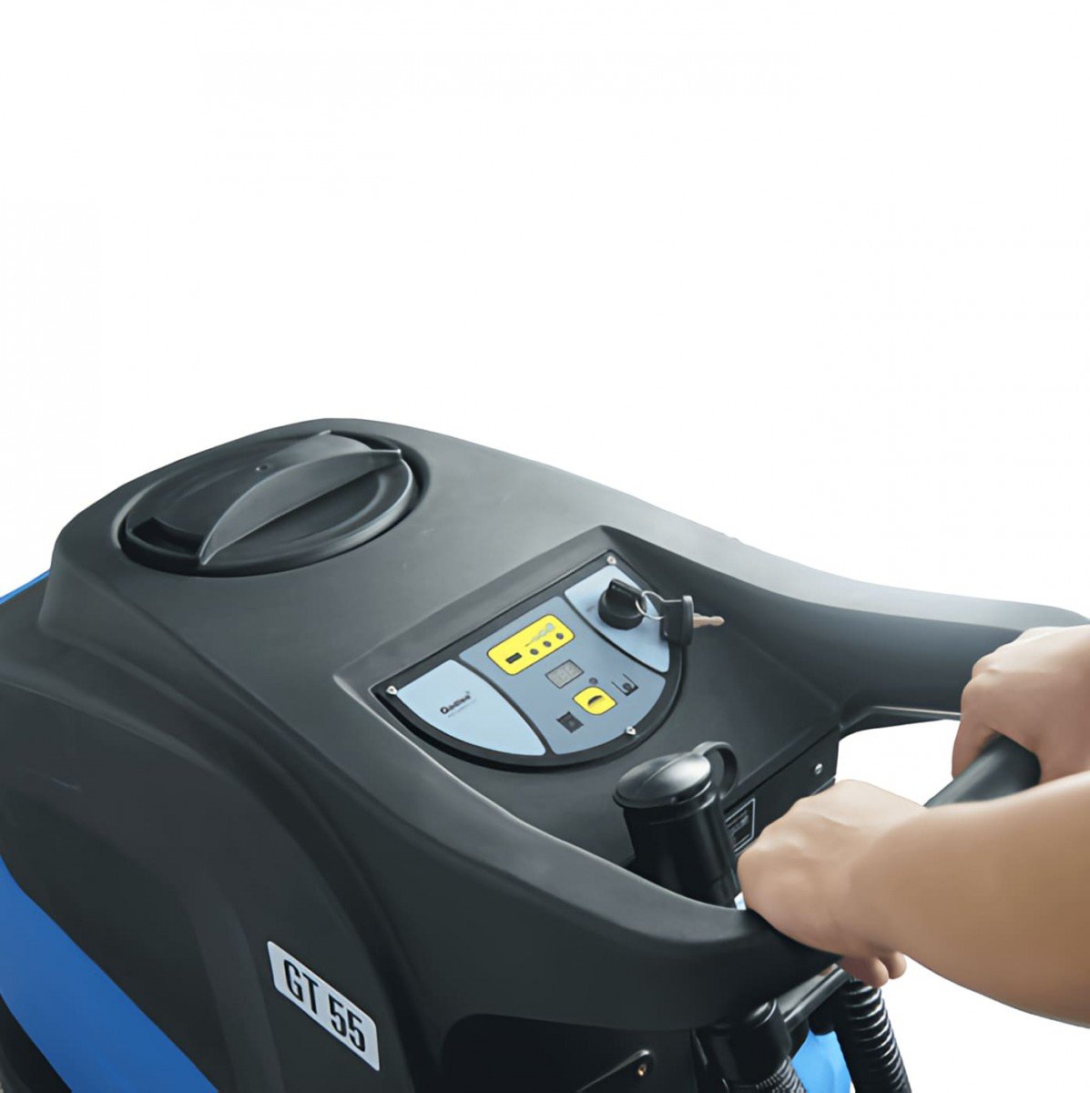 La GT55 BT50 está diseñada para ofrecer la máxima comodidad al operador. Todos los controles, incluido el motor de succión, el motor de cepillo, el suministro de agua y el indicador de carga de batería, se encuentran ergonómicamente ubicados en un panel de control de fácil acceso. Además, el diseño facilita un mantenimiento rápido y sencillo, asegurando un funcionamiento eficiente y prolongado.