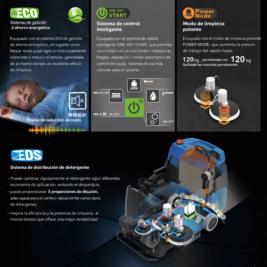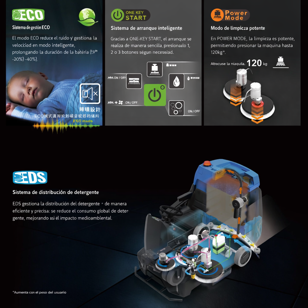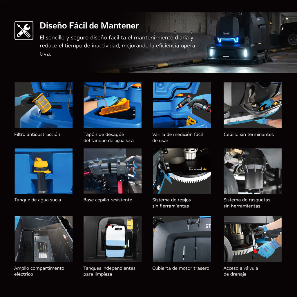 Alta productividad, limpieza de grandes áreas con eficiencia óptima.