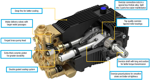 • Bomba Interpump de 3 pistones en línea con sistema de manivela, cabezal de Latón
