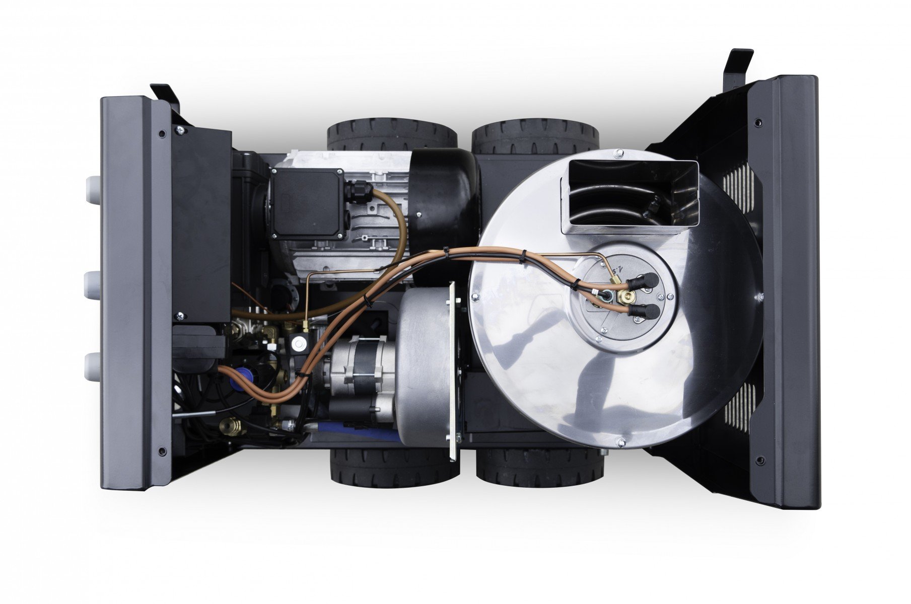 • Caldera vertical fabricada por IDROMATIC con grupo ventilador separado, serpentín de 20mm de diámetro, asilamiento con cemento refractario, con sistema de inspección facilitado, funcionamiento garantizado a 250bar.